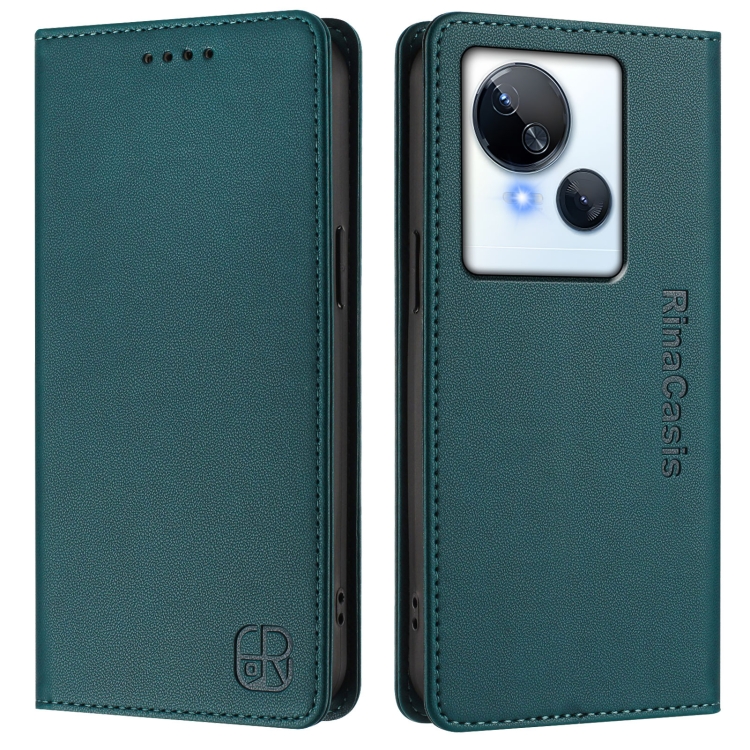 Funda de Cuero para Tecno Spark 10 5G Rc01 con Doble Pliegue y Succión Magnética Rfid (Verde Oscuro)