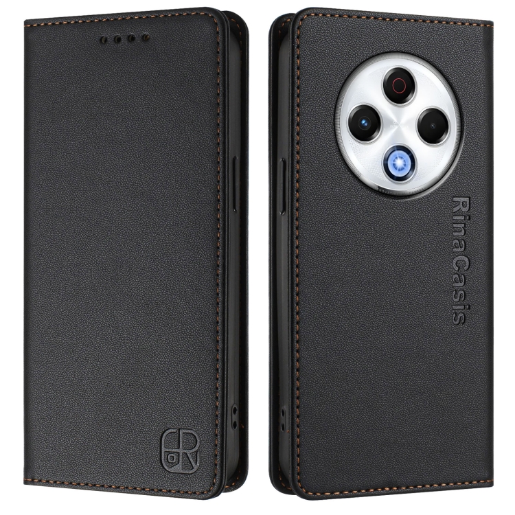 Funda de Cuero con Doble Pliegue y Succión Magnética Rfid para Tecno Spark 30 4G Rc01 (Negra)