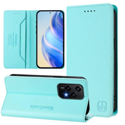 Funda de Cuero con Doble Pliegue y Succión Magnética Rfid para Honor 200 Lite Global Rc01 (Verde Menta)
