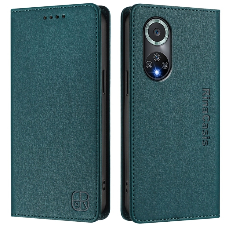 Funda de Cuero con Doble Pliegue y Succión Magnética RFID para Honor 50 Pro Rc01 (Verde Oscuro)