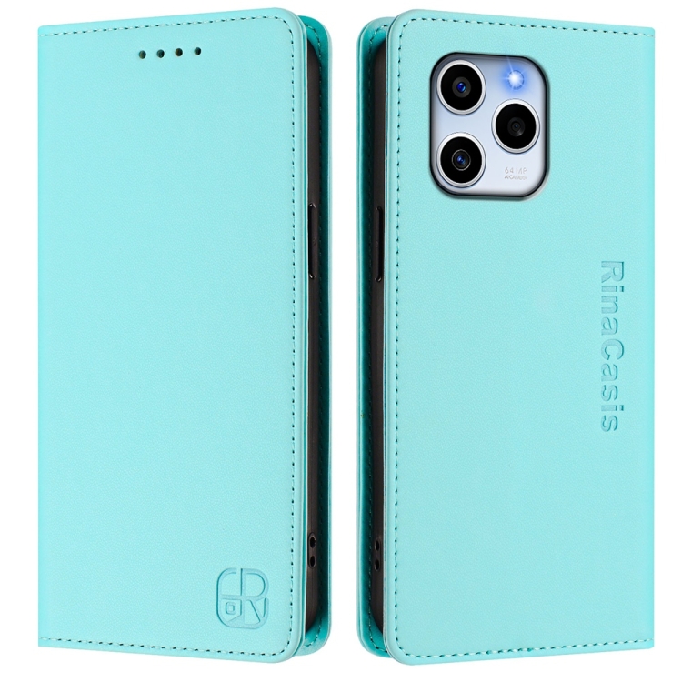 Funda de Cuero con Doble Pliegue y Succión Magnética Rfid para Honor 60 Se Rc01 (Verde Menta)