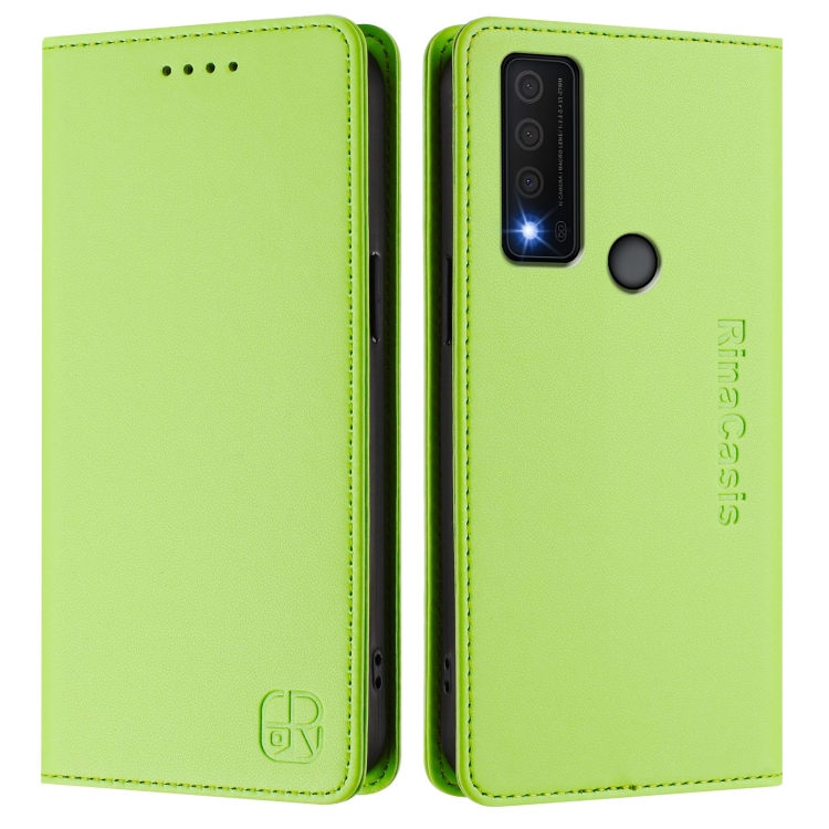 Funda de Cuero para TCL 30 Xe 5G Rc01 con Doble Pliegue y Succión Magnética Rfid (Verde Hierba)
