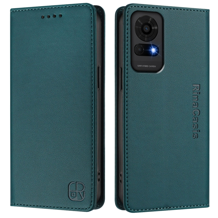 Funda de Cuero para Teléfono TCL 50 Le Rc01 con Doble Pliegue y Succión Magnética Rfid (Verde Oscuro)