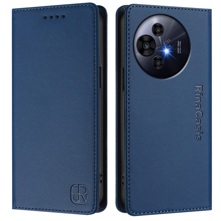 Funda de Cuero con Doble Pliegue y Succión Magnética Rfid para TCL 50 Pro Nxtpaper Rc01 (Azul Oscuro)