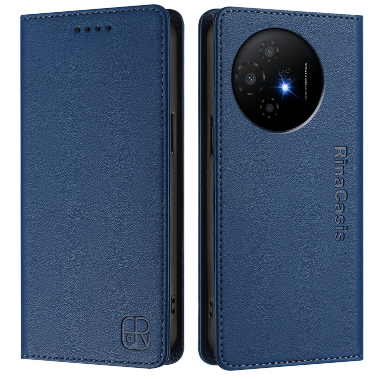 Funda de Cuero con Doble Pliegue y Succión Magnética Rfid para TCL 50 Xl 5G Rc01 (Azul Oscuro)