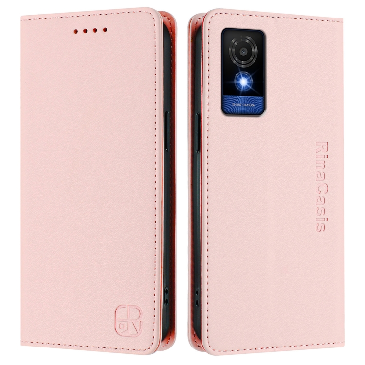 Funda de Cuero para Teléfono TCL 501 Rc01 con Doble Pliegue y Succión Magnética Rfid (Rosa)