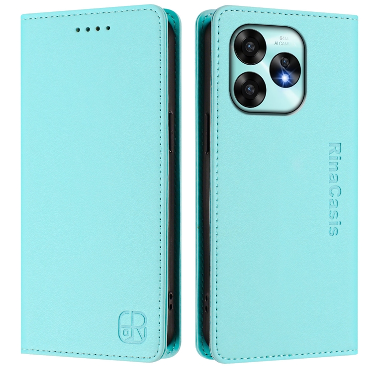 Funda de Cuero con Doble Pliegue y Succión Magnética Rfid para Umidigi A15/A15C/A15T Rc01 (Verde Menta)