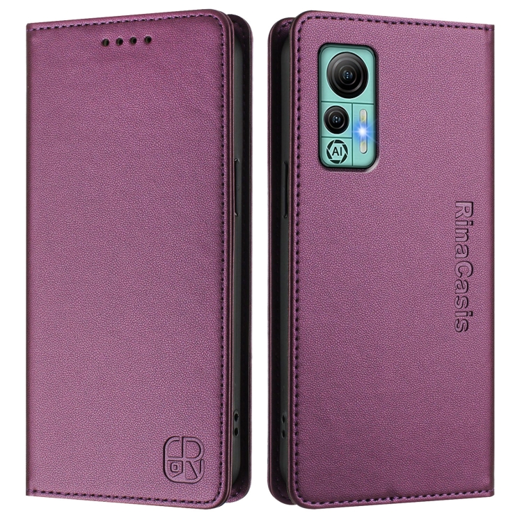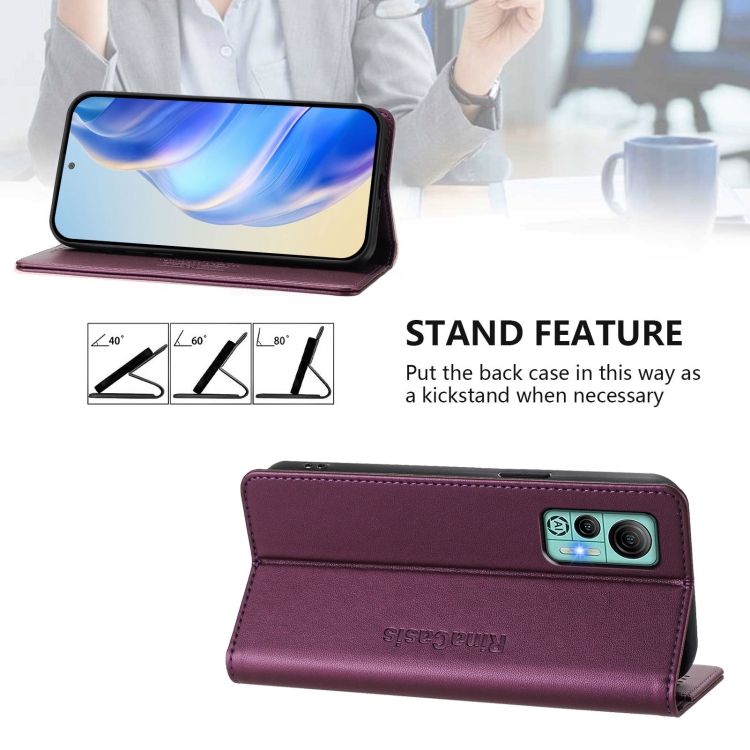 Funda de Cuero para Ulefone Note 14 Rc01 con Doble Pliegue y Succión Magnética Rfid (Violeta)