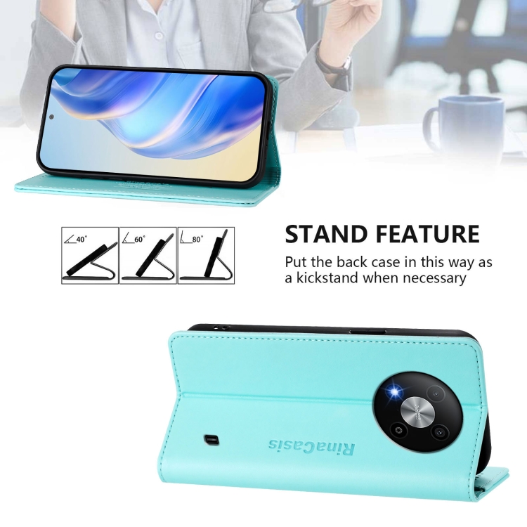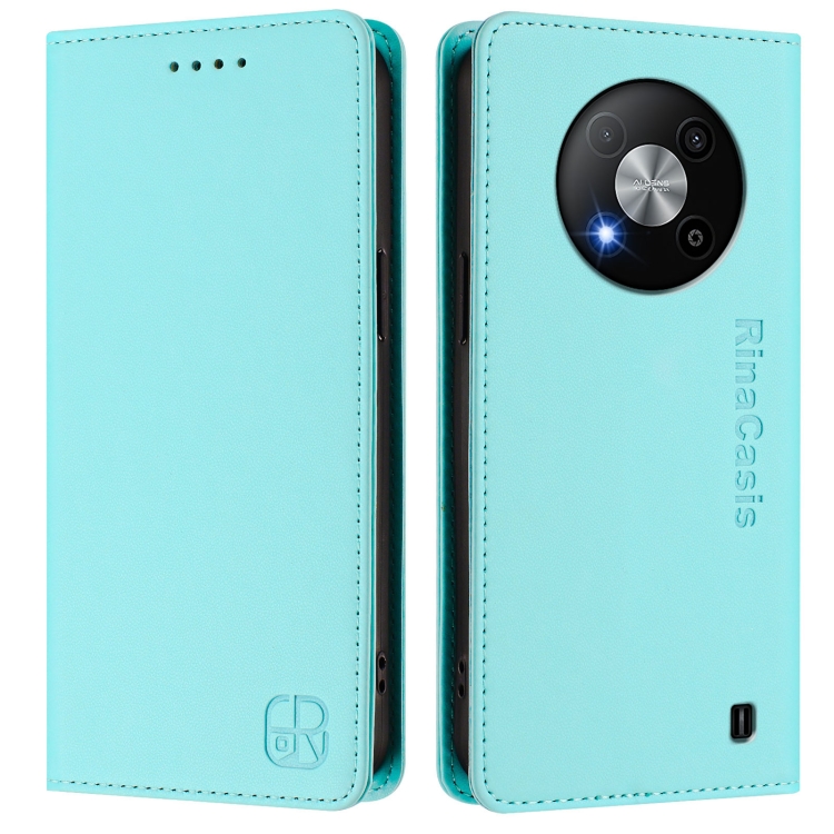 Funda de Cuero para ZTE Blade A73 5G Rc01 con Doble Pliegue y Succión Magnética Rfid (Verde Menta)