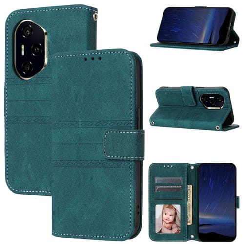 Funda de Cuero efecto Piel de Serpiente y Rayas para Honor 300 Pro 5G/300 Ultra 5G (Verde Oscuro)