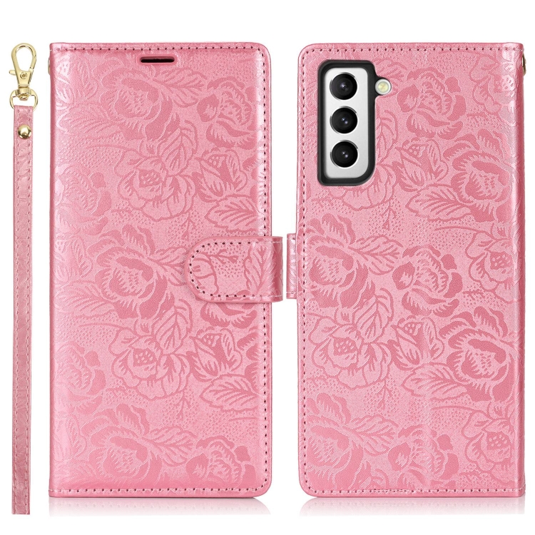 Funda Cuero Samsung Galaxy S21+ 5G Estampado Flores Peonía (Rosa)