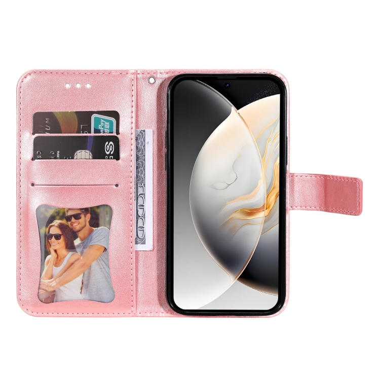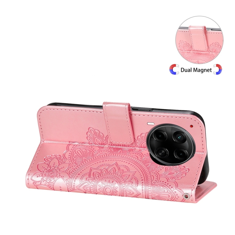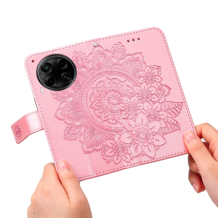 Funda de Cuero con Estampado de Flores de Siete Pétalos para Tecno Camon 30S y 30S Pro (Oro Rosa)