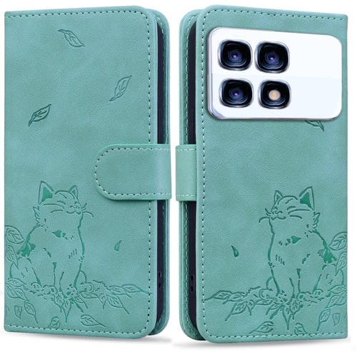 Funda de Cuero con Estampado de Gato En Relieve para Redmi K70 Ultra (Verde)