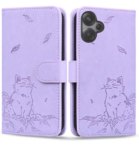 Funda de Cuero con Estampado de Gato para Redmi 13 4G (Morado)