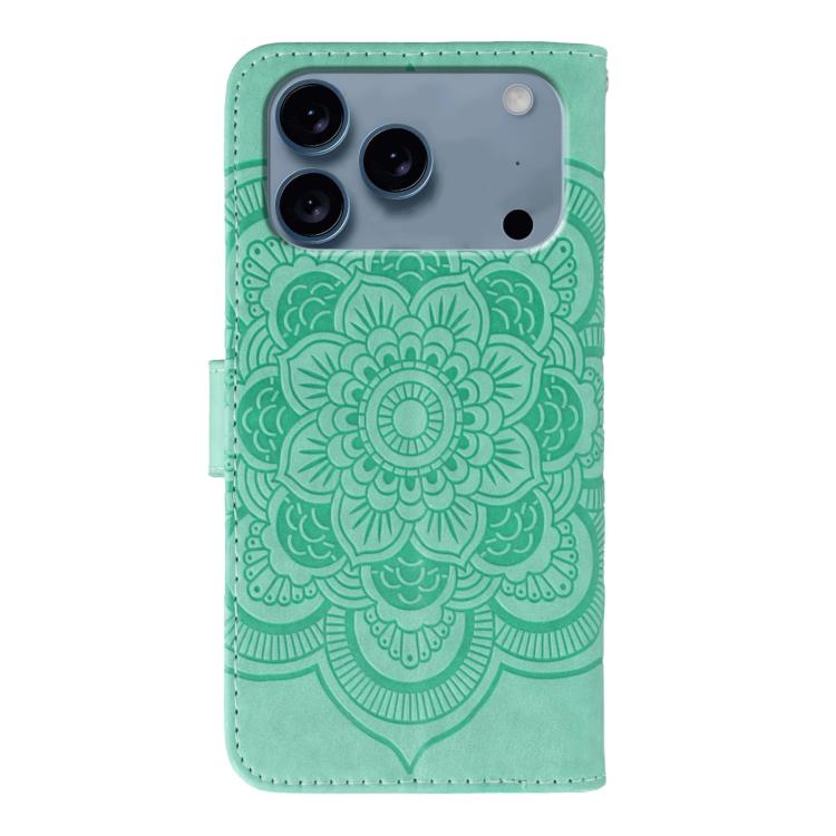 Funda de cuero con estampado de mandala solar para iPhone 17 Pro Max (verde)