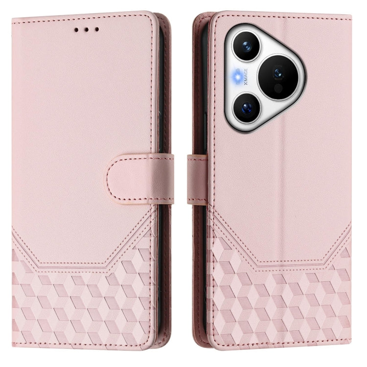 Funda de Cuero con Estampado de Panal RFID para Huawei Pura 70 (Rosa)