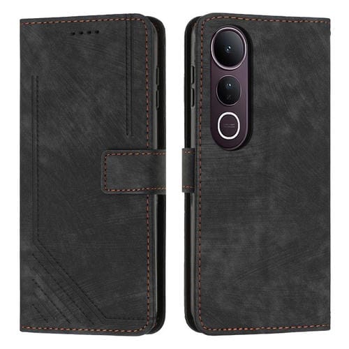 Funda de Cuero con Estampado de Rayas y Cordón para Vivo V50 Lite (Negro)