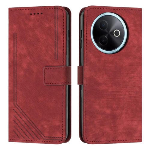 Funda de Cuero con Estampado de Rayas y Cordón para Vivo Y39 5G (Rojo)