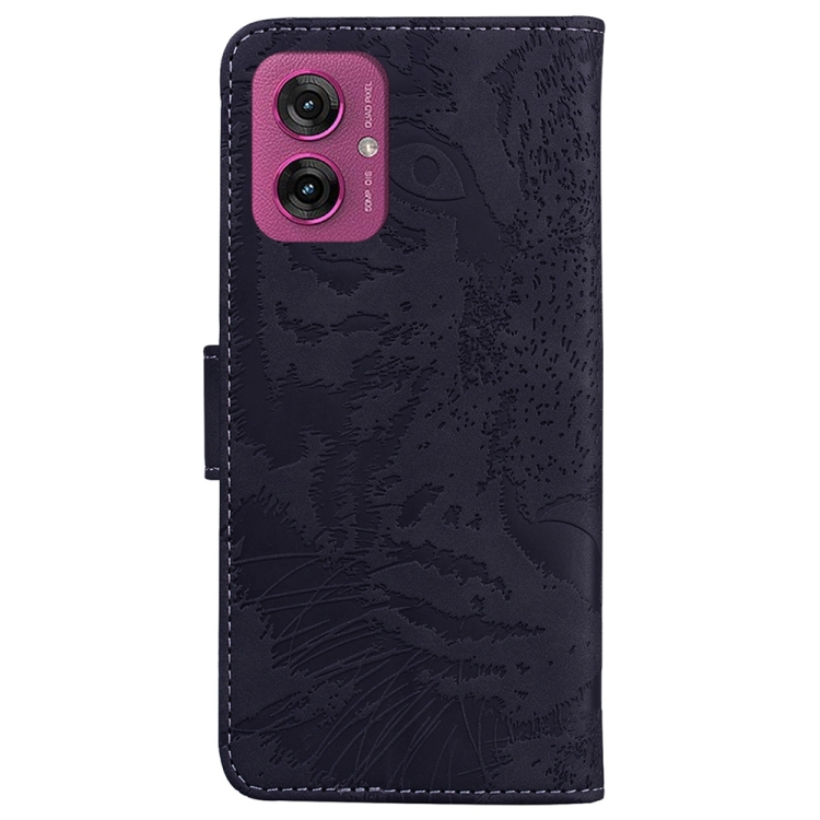 Funda de Cuero para Motorola Moto G55 con Estampado de Tigre (Negra)