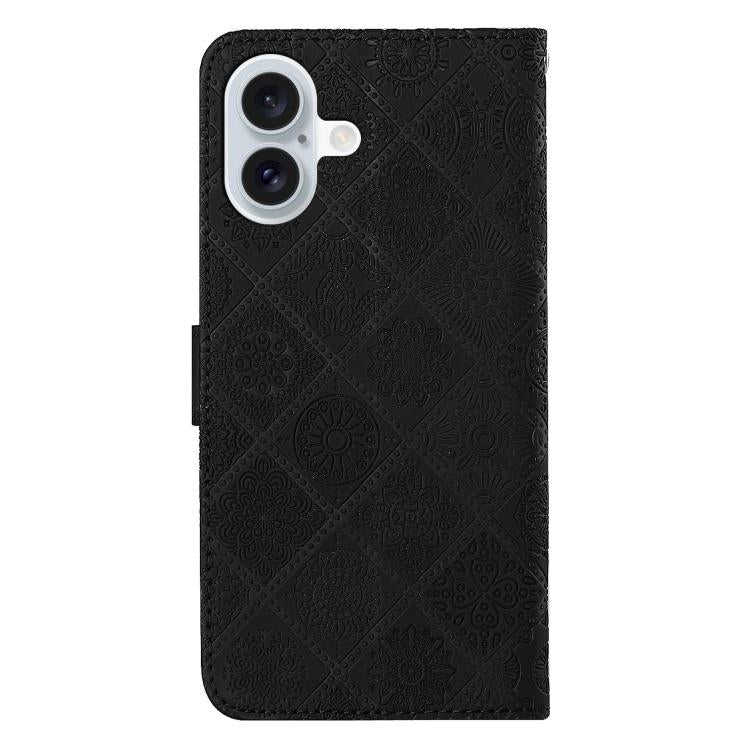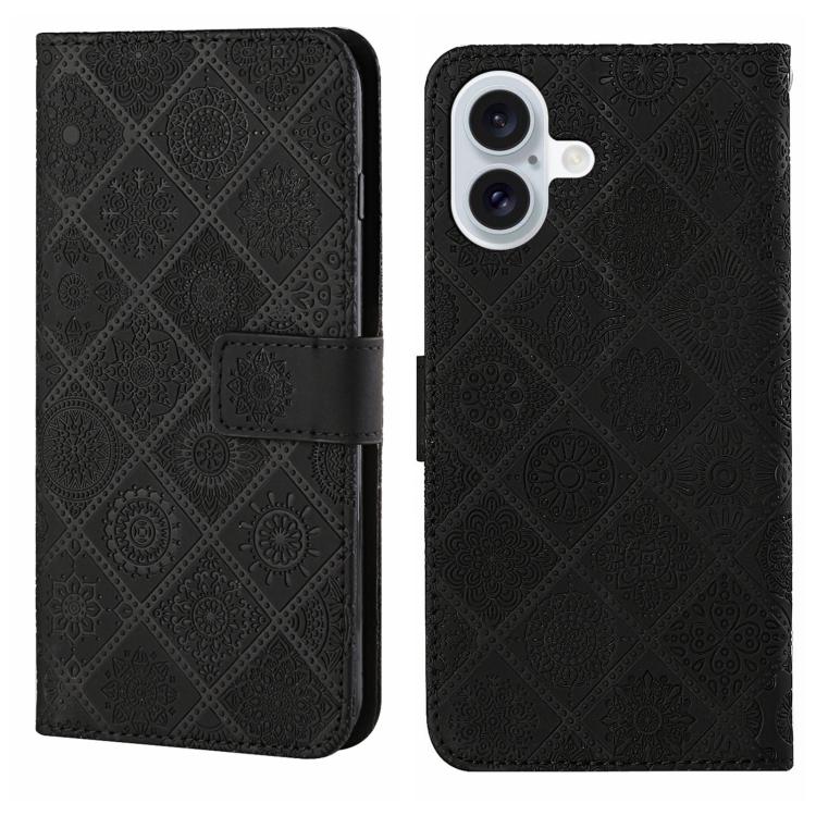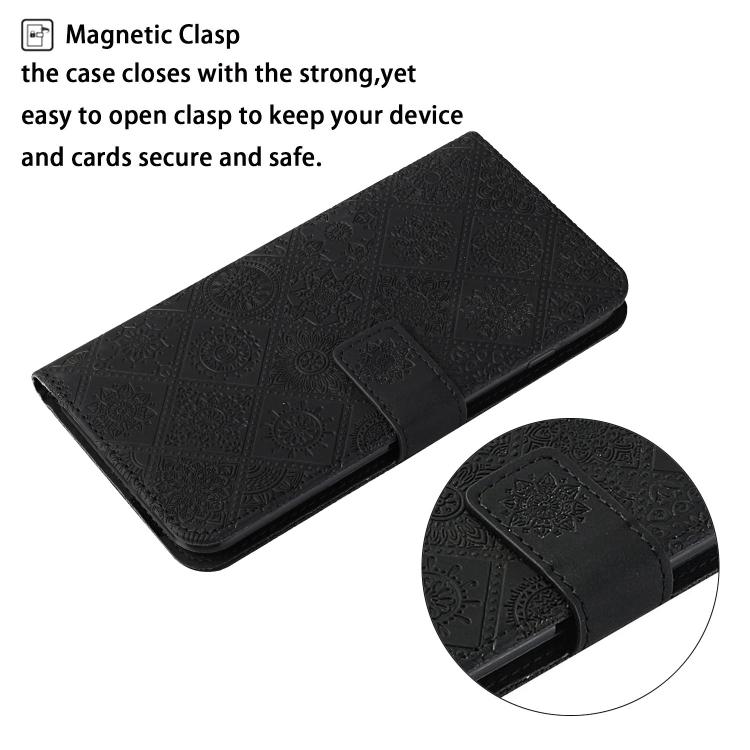 Funda de cuero con estampado étnico en relieve para iPhone 17 (negra)