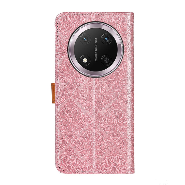 Funda de Cuero con Estampado Floral Europeo para Honor X9C (Rosa)