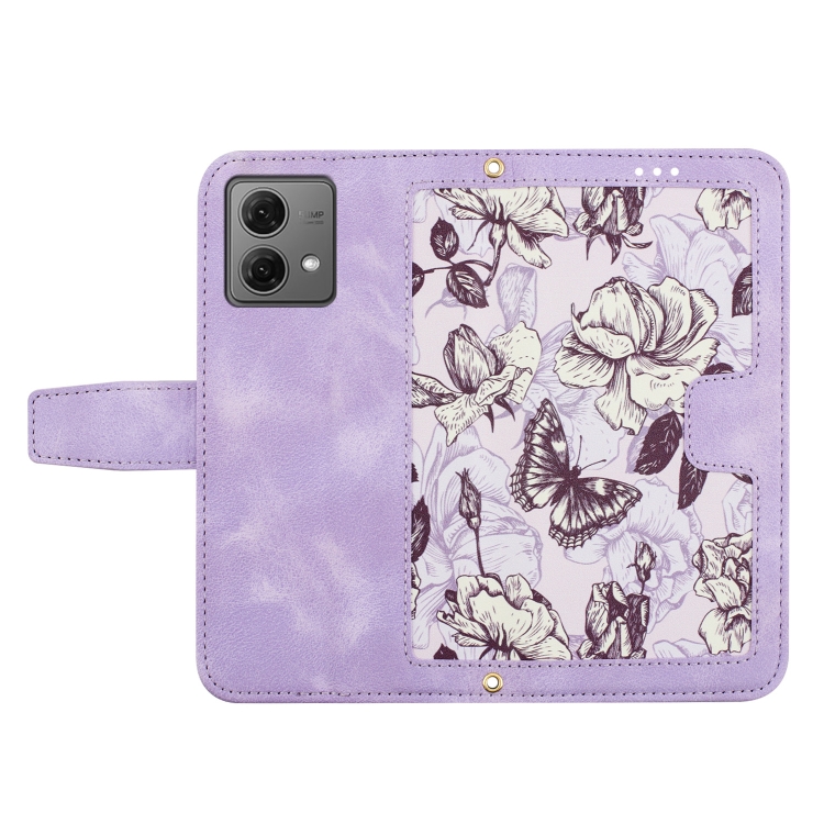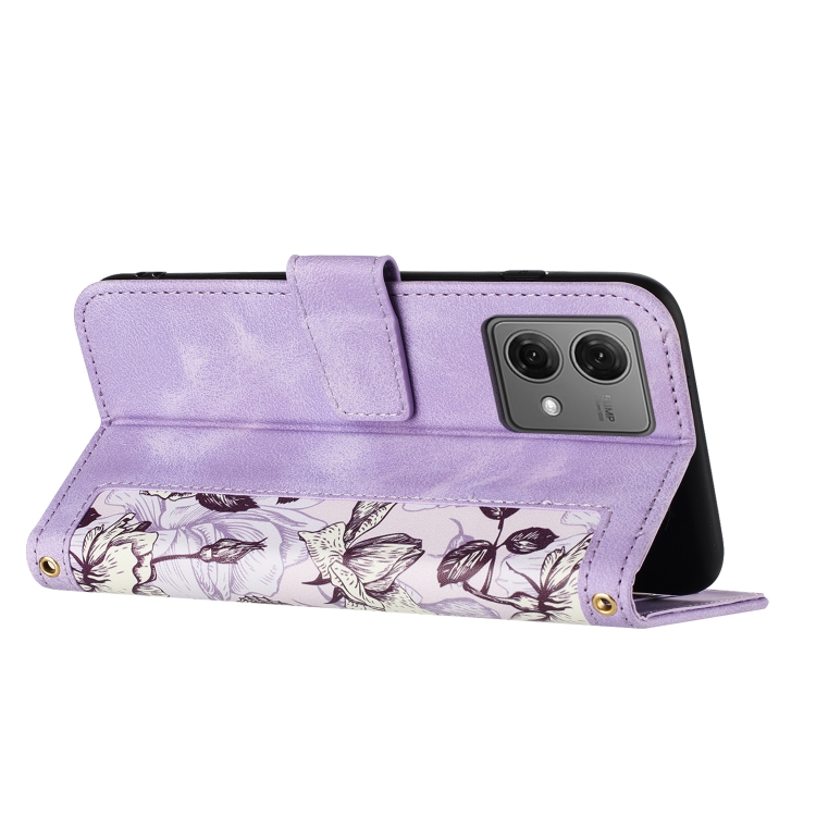 Funda de Cuero con Estampado Floral para Motorola Moto G84 con Cordón (Morado Claro)
