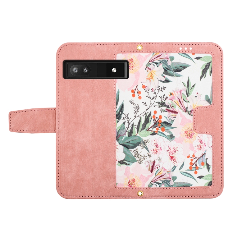 Funda de Cuero con Estampado Floral y Cordón para Google Pixel 7A (Rosa)