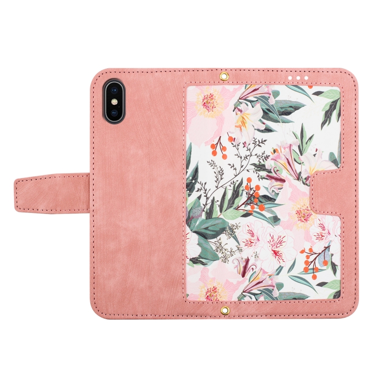 Funda de Cuero para iPhone Xs Max con Estampado Floral y Cordón (Rosa)