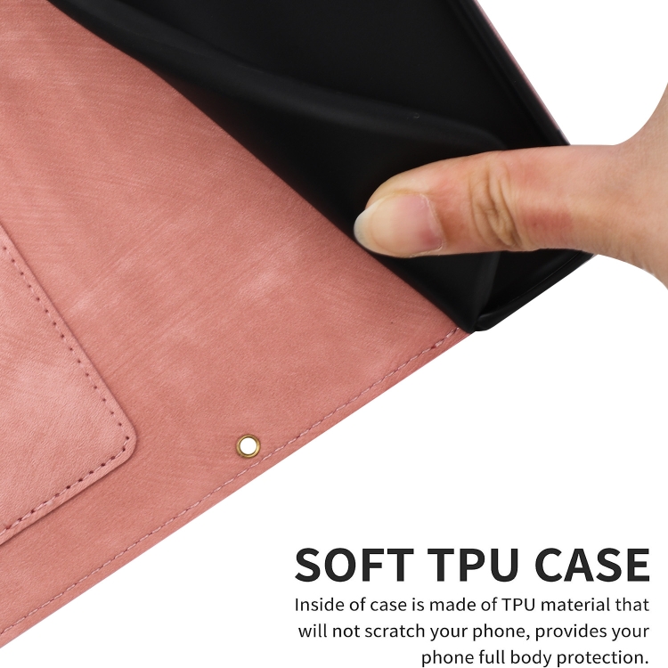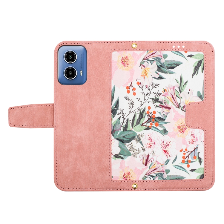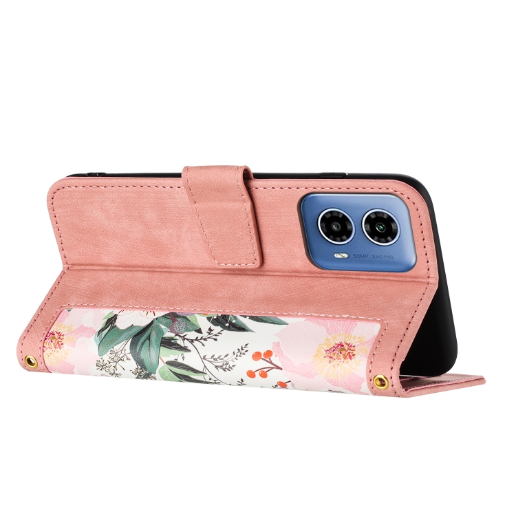 Funda de Cuero con Estampado Floral y Cordón para Motorola Moto G34 (Rosa)