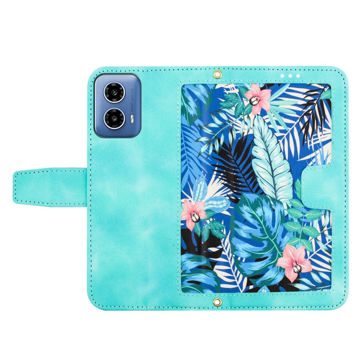 Funda de Cuero Motorola Moto G34 con Estampado Floral y Cordón (Verde)