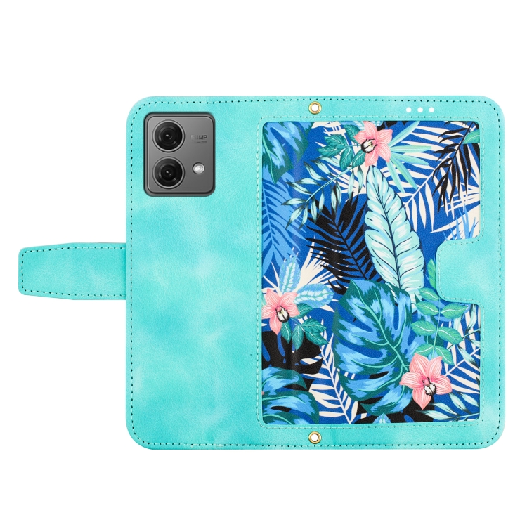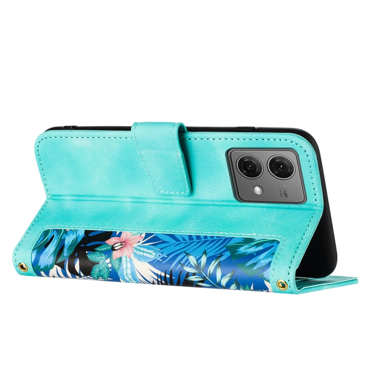 Funda de Cuero con Estampado Floral y Cordón para Motorola Moto G84 (Verde)