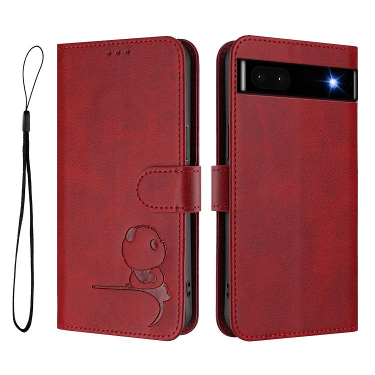 Funda de cuero con estampado RFID y cordón para Google Pixel 6a (rojo vino)