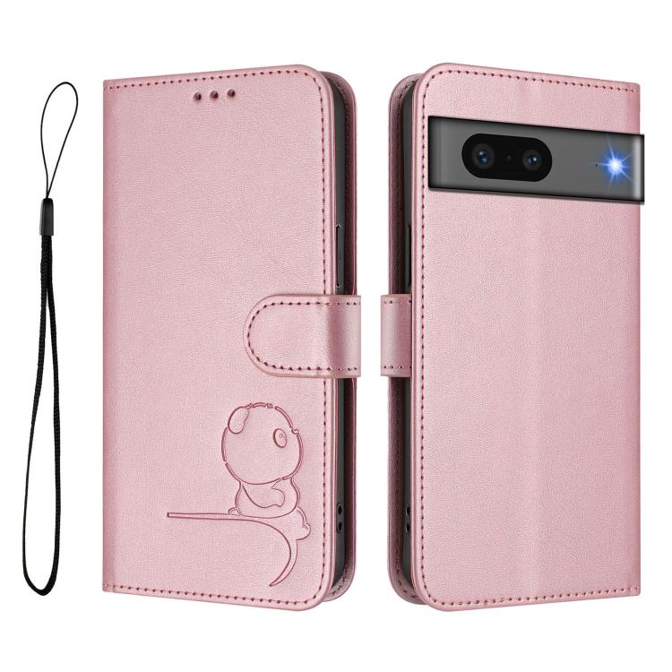 Funda de cuero con estampado RFID y cordón para Google Pixel 7 (rosa)