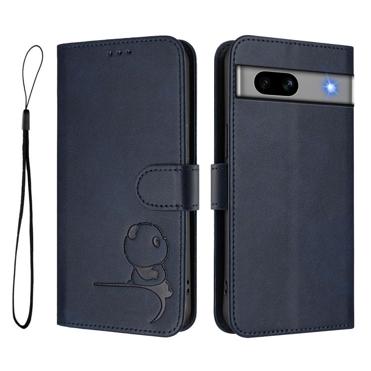 Funda de cuero con estampado RFID y cordón para Google Pixel 7a (azul)