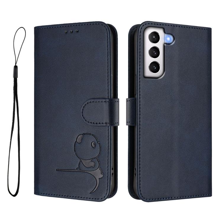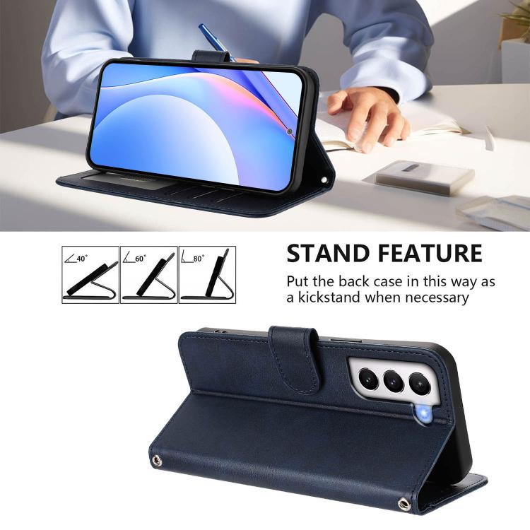 Funda de cuero con estampado RFID y cordón para Samsung Galaxy S21+ 5G (azul)