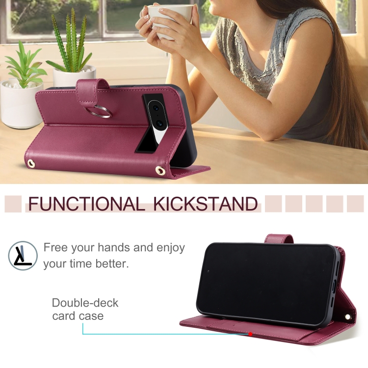 Funda de Cuero con Forma de Rombo y Hebilla de Anillo para Google Pixel 8 (Rojo)