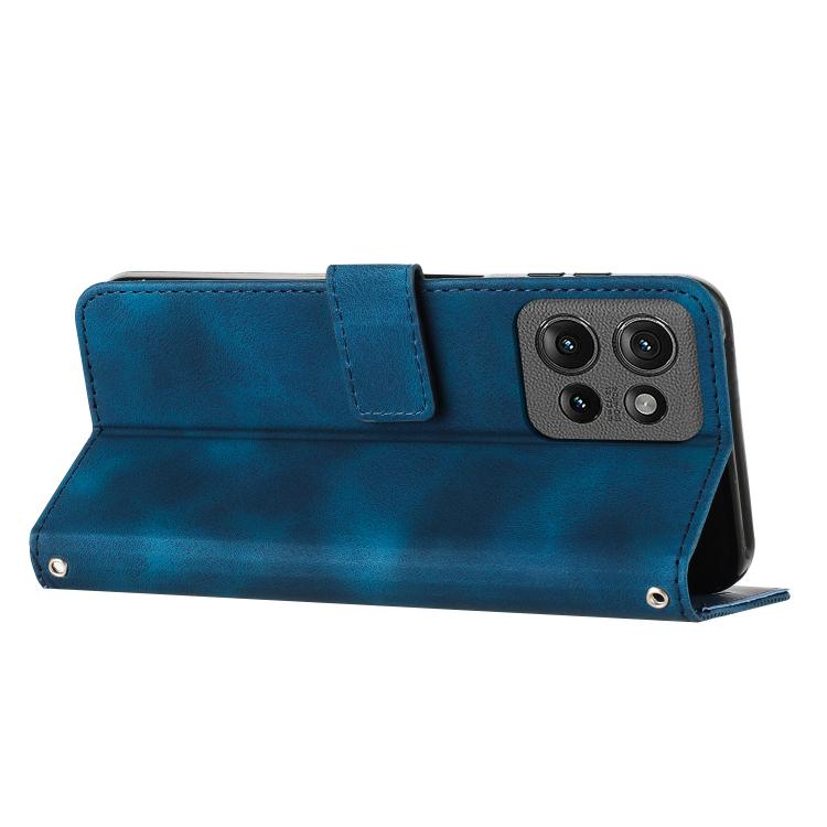 Funda de Cuero Triángulo para Motorola Moto G 5G 2025 Dream Triangle con Cordón (Azul)