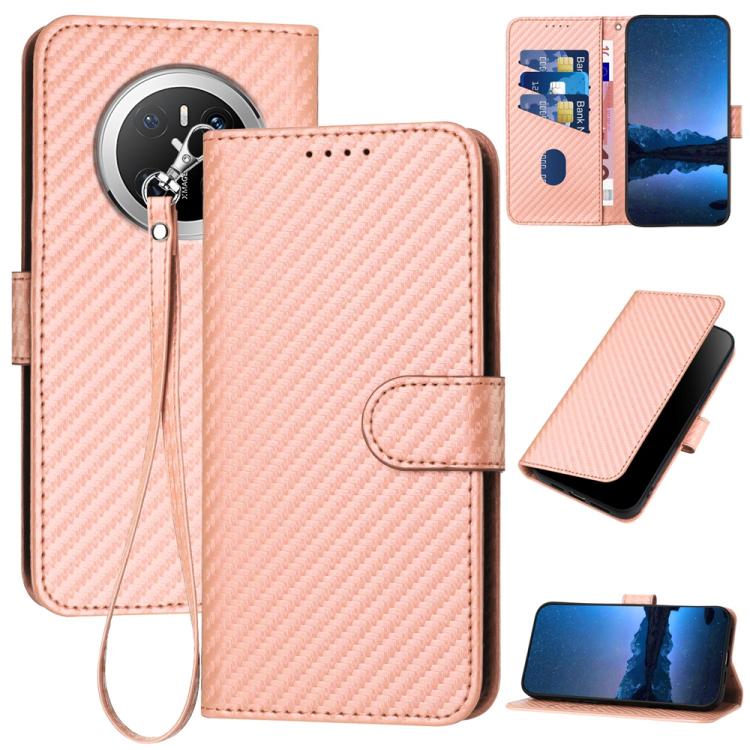 Funda de Cuero con Hebilla de Fibra de Carbono para Huawei Mate 70 Yx0070 con Cordón (Rosa)