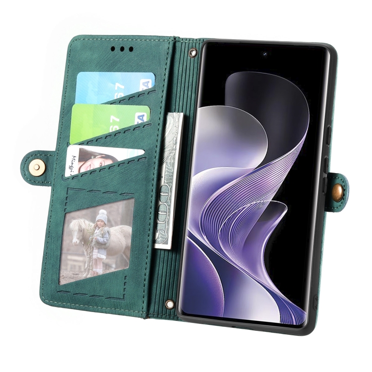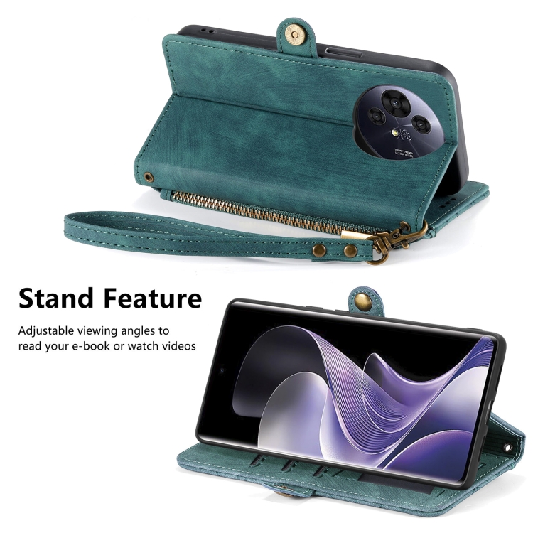 Funda de Cuero Nxtpaper para TCL 50 Pro con Hebilla Lateral y Cremallera Geométrica (Verde)