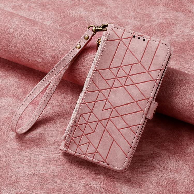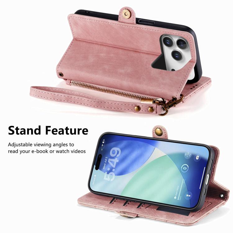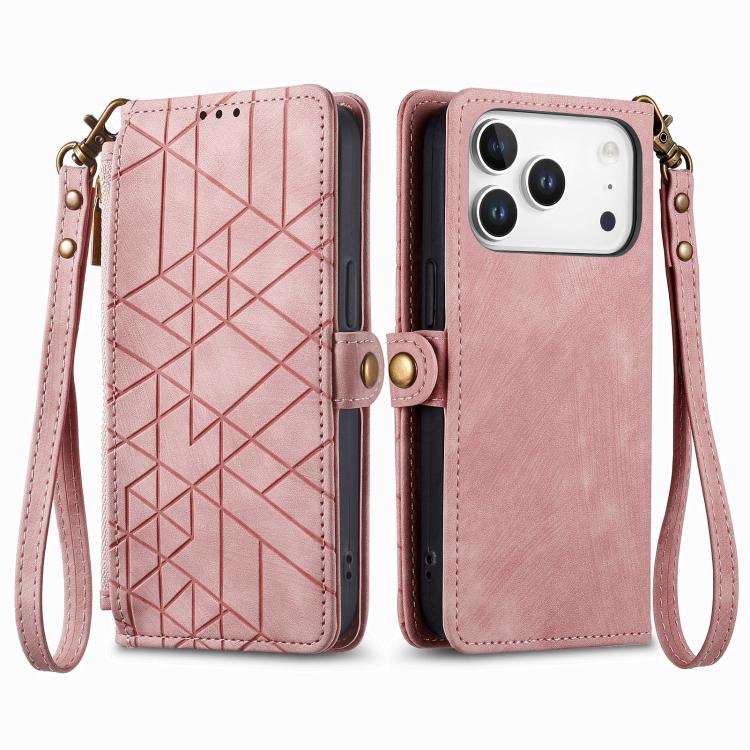 Funda de cuero con hebilla lateral y cremallera geométrica para iPhone 17 Pro Max (rosa)
