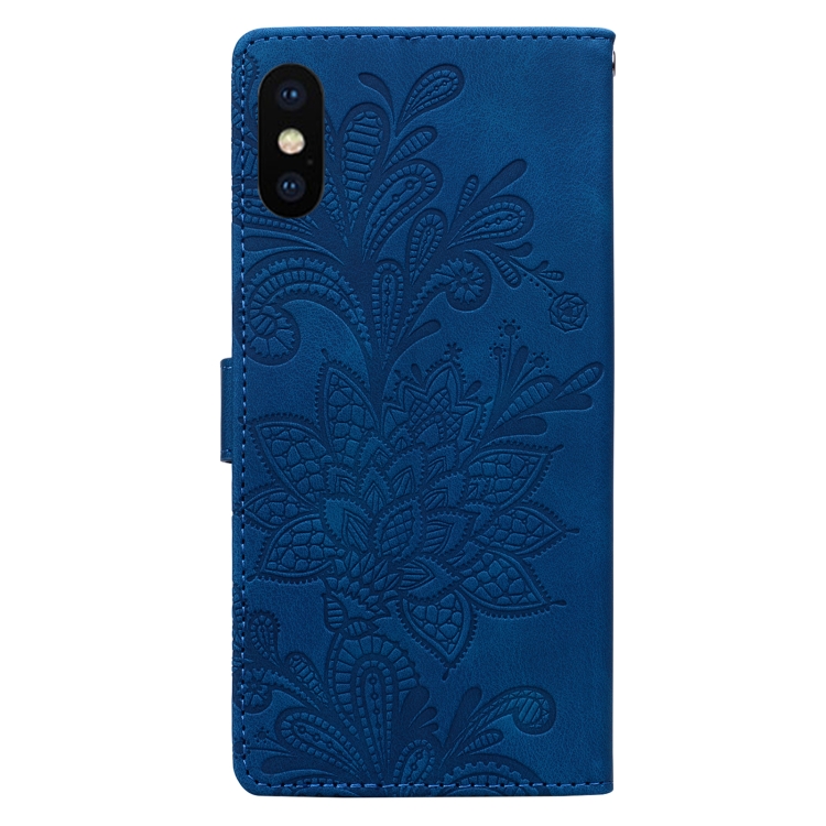 Funda de Cuero con Hebilla Magnética y Diseño Floral en Relieve para iPhone X/Xs (Azul)