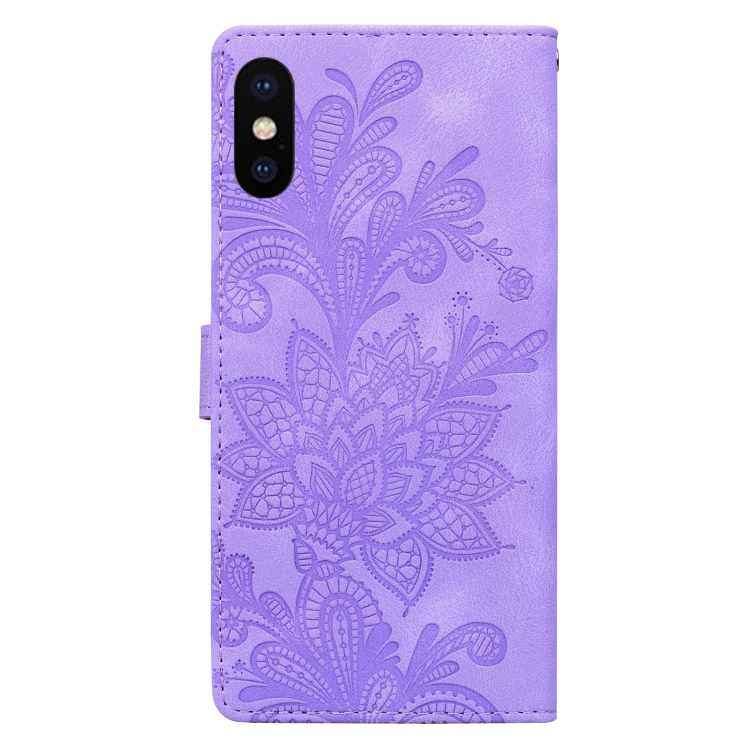 Funda de Cuero con Hebilla Magnética y Diseño Floral en Relieve para iPhone X/Xs (Morado)