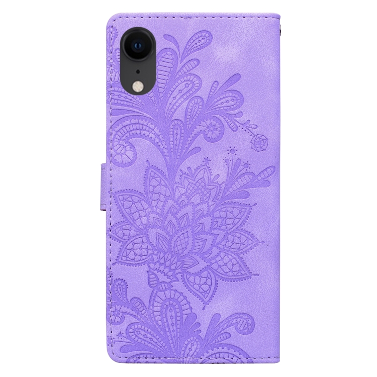 Funda de Cuero con Hebilla Magnética y Diseño Floral En Relieve para iPhone Xr (Morado)