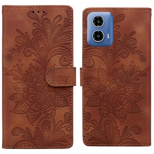 Funda de Cuero Motorola Moto G34 con Hebilla Magnética y Diseño Floral (Marrón)