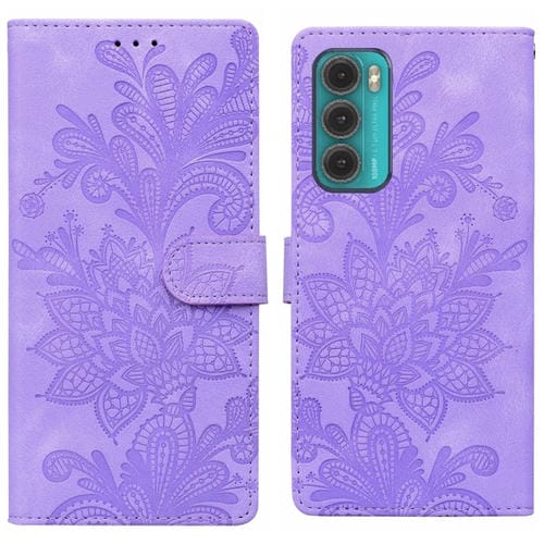 Funda de Cuero con Hebilla Magnética y Diseño Floral para Motorola Moto G60 (Morado)