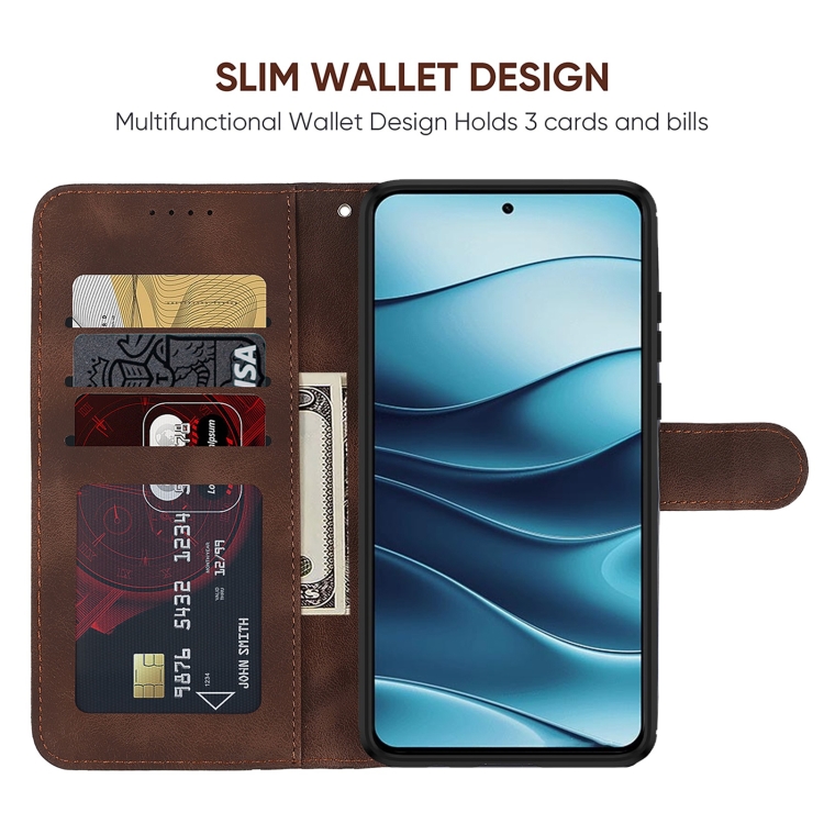 Funda de Cuero con Líneas Geométricas y Tacto de Piel para Redmi Note 14 5G (Marrón)