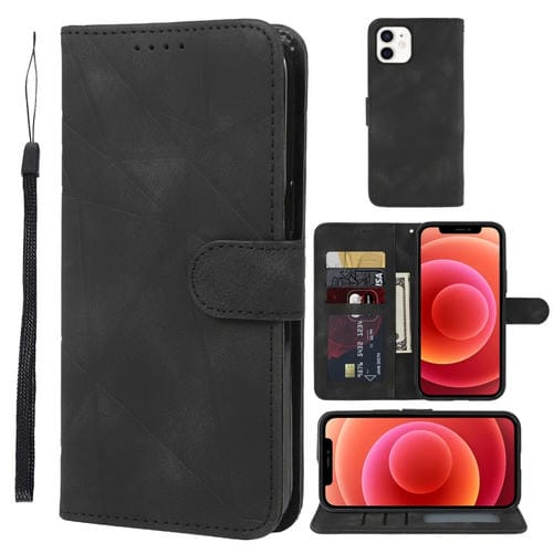 Funda de Cuero iPhone 12 Mini Líneas Geométricas Tacto Sedoso (Negro)