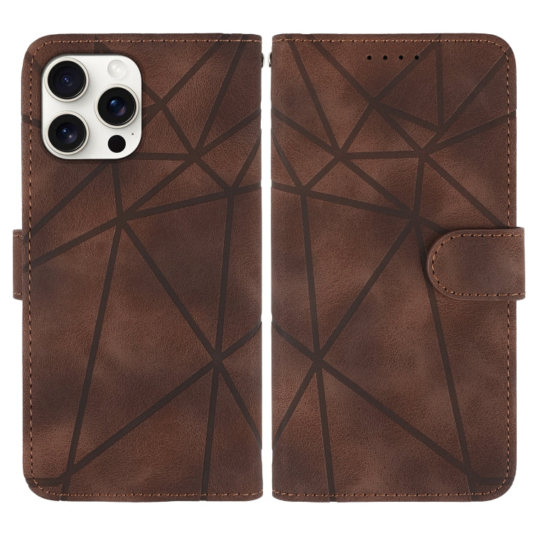 Funda de Cuero iPhone 16 Pro Líneas Geométricas Tacto Sedoso (Marrón)
