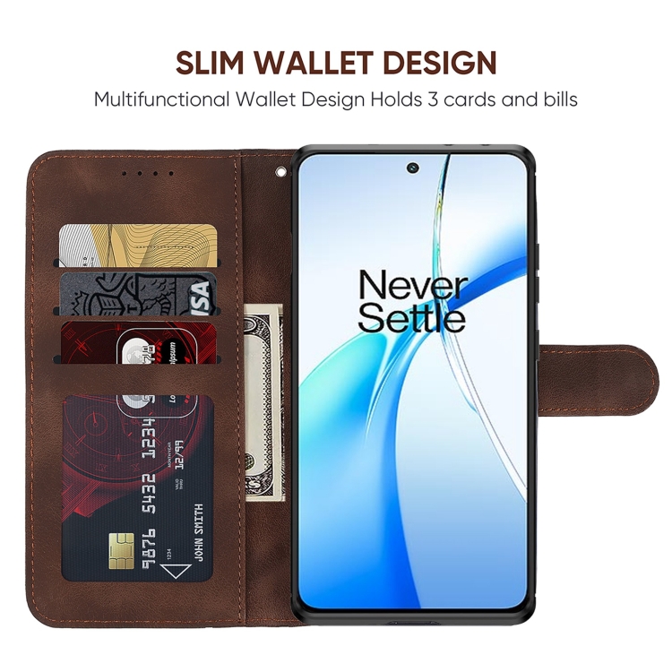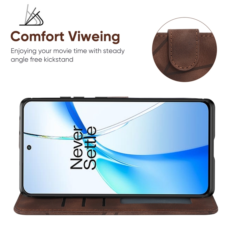 Funda de Cuero para OnePlus Ace 3V con Líneas Geométricas y Tacto Sedoso (Marrón)