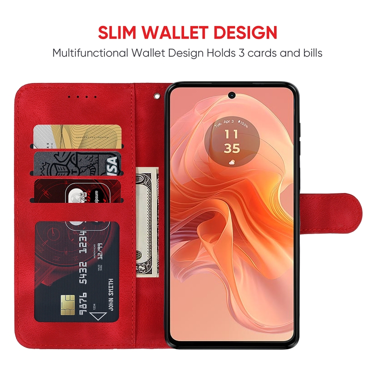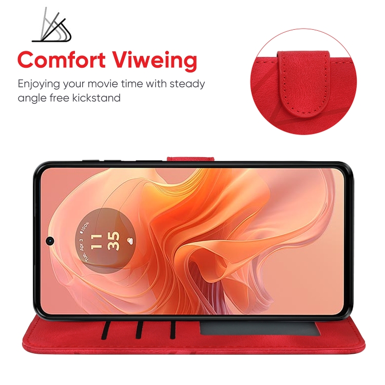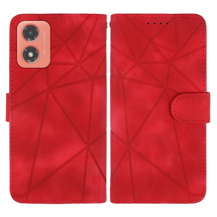 Funda de Cuero para Motorola Moto G04 con Líneas Geométricas y Tacto Suave (Rojo)